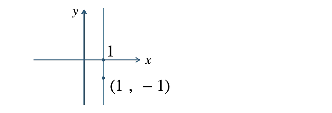 点 \((1~,~-1)\) を通り、\(x\) 軸に垂直な直線は、