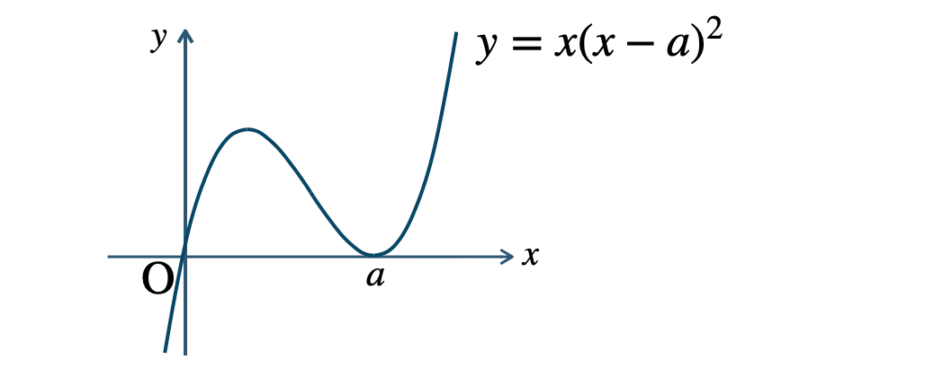 ■ 関数 \(y=x(x-a)^2\) のグラフは、\(a \gt 0\) とすると、\(x=a\) で重解をもつのでこの点で \(x\) 軸に接し、\(x^3\) の係数が正であるので、