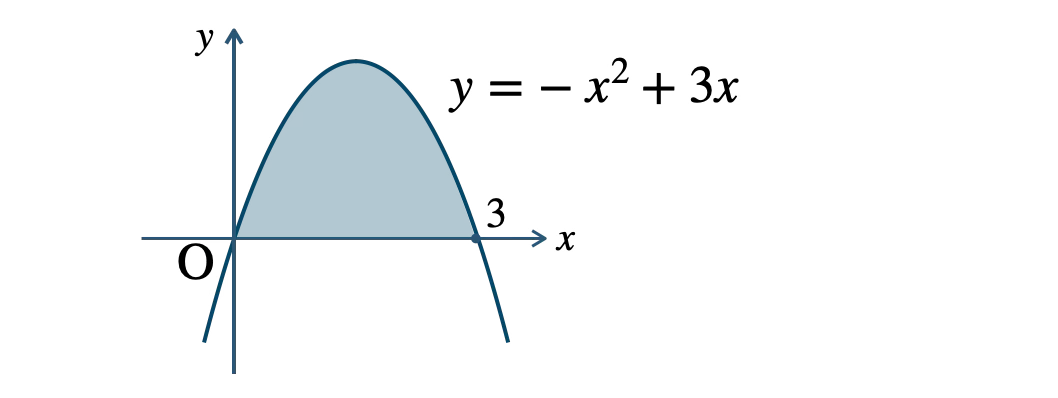 \(y=-x^2+3x\) と \(x\) 軸との交点は、