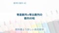 数列 43群数列 \(2 ~|~ 4 ~,~ 6 ~|~ 8 ~,~ 10 ~,~ 12 ~|~ 14 ~,~ \cdots\) の第 \(n\) 群の最初の項の求め方は?また、第 \(n\) 群のすべての項の和は?