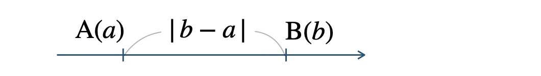 \({\rm AB}=|\, b-a \,|\)