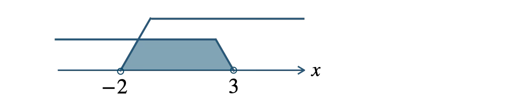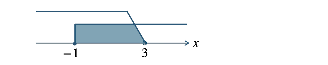 \(x{\small ~≧~}-1\) かつ \(x \lt 3\) では、