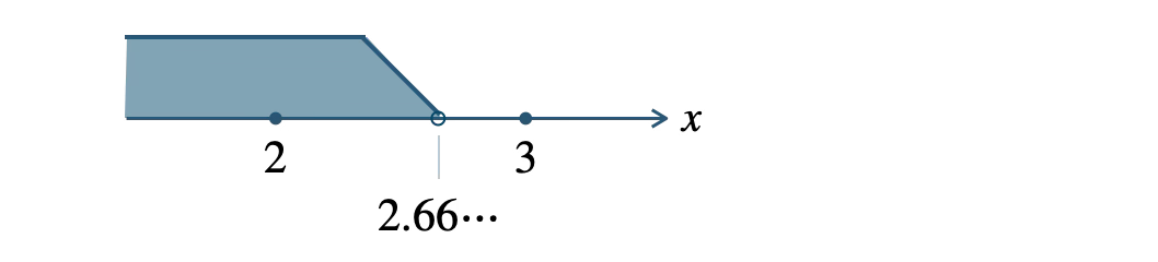 \(\begin{eqnarray}~~~3x-8 &\lt& 0\\[5pt]~~~x &\lt& \displaystyle \frac{\,8\,}{\,3\,}=2.66\cdots\end{eqnarray}\)