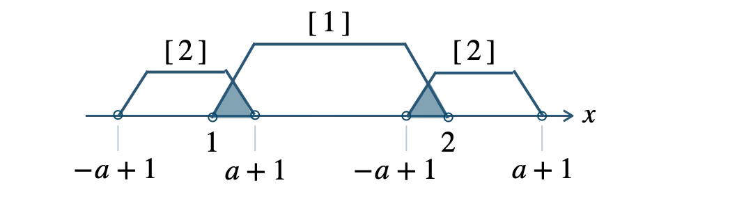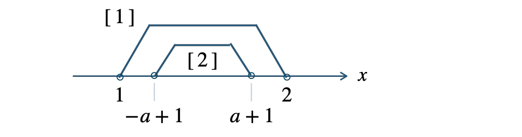 \\[3pt]~~~&&-a+1 \lt x \lt a+1~~~\cdots {\small [\,2\,]}\end{eqnarray}\)