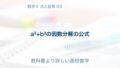 また、\((a-b)(a^2+ab+b^2)\) の公式は、\(b=-b\) と置き換えて考えればよい。
