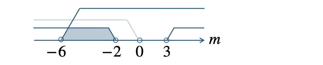 共通範囲より、\(-6 \lt m \lt -2\) となる