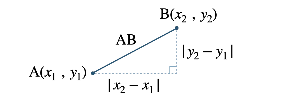 \({\rm AB}=\sqrt{(x_2-x_1)^2+(y_2-y_1)^2}\)