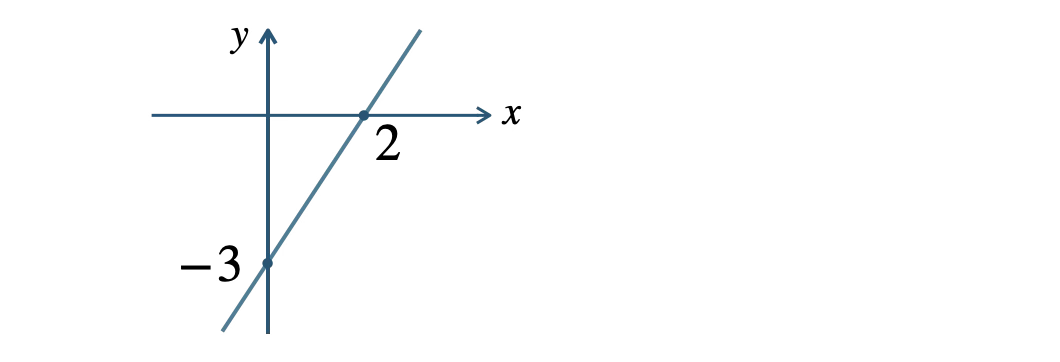 \(x\) 切片が \(2\)、\(y\) 切片が \(-3\) であるので、