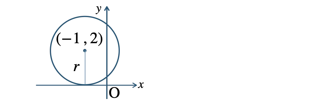 点 \( (-1~,~2) \) が中心の円が \( x \) 軸と接するとき、
