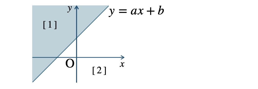 \({\small [\,1\,]}\) \(y{\small ~≧~}ax+b\) は直線より上側