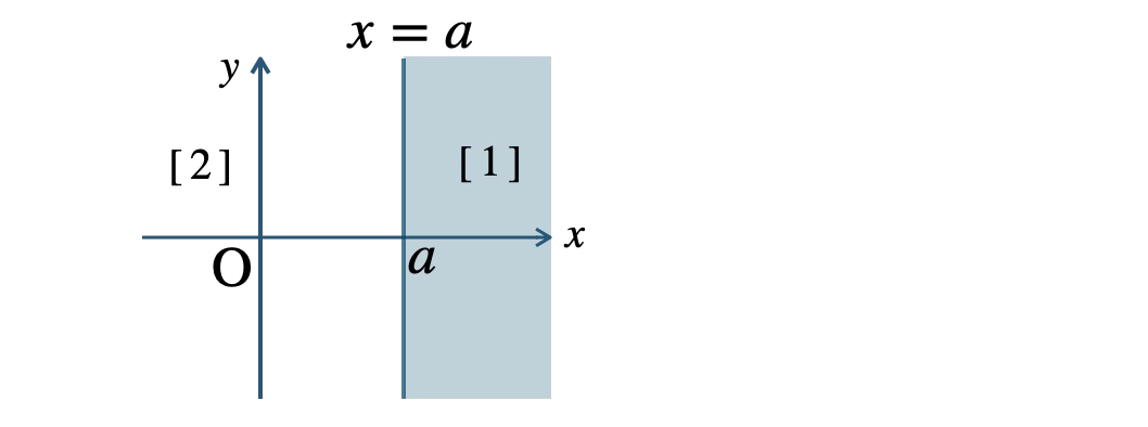 \({\small [\,1\,]}\) \(x{\small ~≧~}a\) は、\(x=a\) より右側