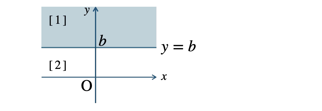 \({\small [\,1\,]}\) \(y{\small ~≧~}b\) は、\(y=b\) より上側
