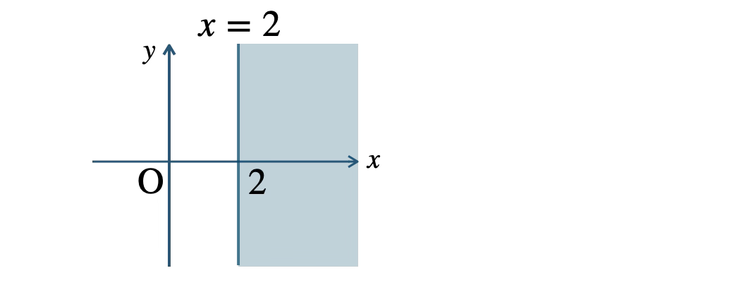 \(x\gt2\) は、直線 \(x=2\) の右側の部分となる