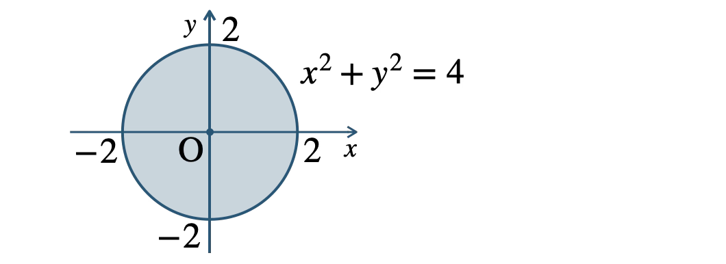 不等式 \(x^2+y^2 {\small ~≦~} 4\) より、