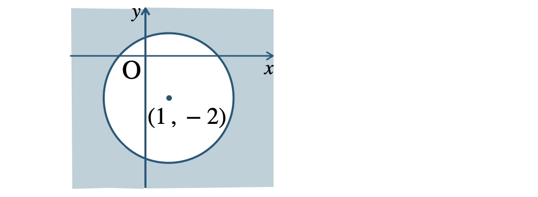 よって、中心 \((1~,~-2)\)、半径 \(3\) の円の外部となる