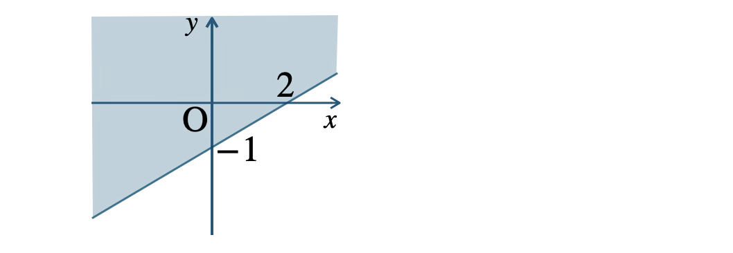 図より、直線 \(y=\displaystyle \frac{\,1\,}{\,2\,}x-1\) の上側で、境界線を含まないので、