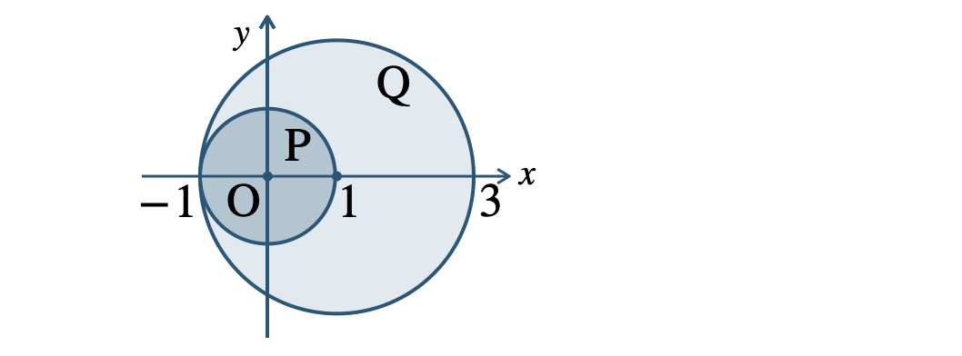 図より、\({\rm P} \subset {\rm Q}\)( \({\rm P}\) が \({\rm Q}\) の部分集合 )であるから、