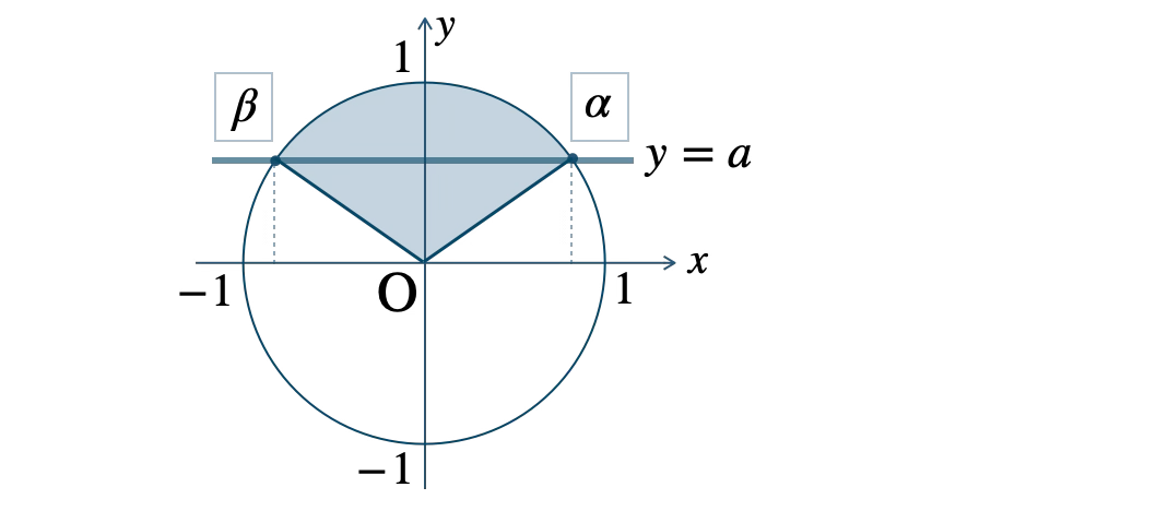 \(y=a\) と単位円との交点を結ぶ動径より、