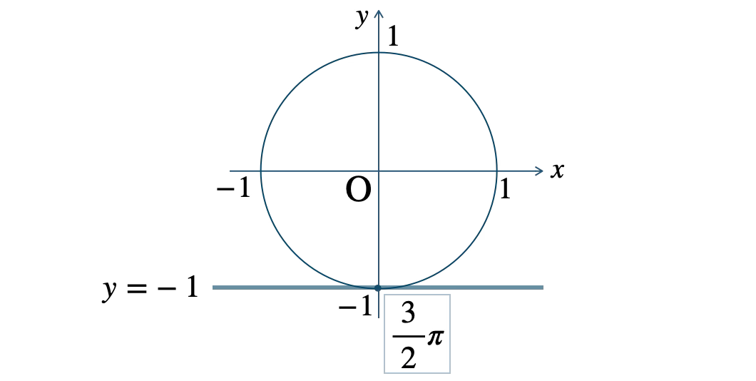 \(\sin x+1=0\) のとき、すなわち \(\sin x=-1\) より、