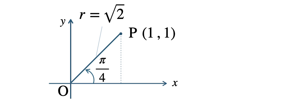 \(r=\sqrt{\,2\,}~,~\alpha=\displaystyle \frac{\,\pi\,}{\,4\,}\)