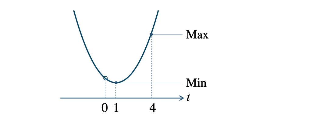 よって \(0 \lt t{\small ~≦~}4\)