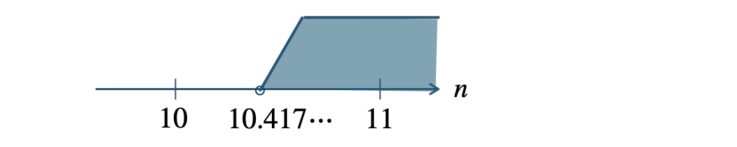\(~\Leftrightarrow ~ n{\small ~≧~}10.417\cdots\)