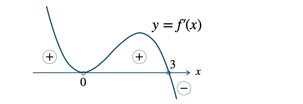\(0 \lt x \lt 3\) のとき、\(f^{\prime}(x) \gt 0\)