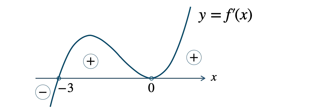 \(-3 \lt x \lt 0\) のとき、\(f^{\prime}(x) \gt 0\)