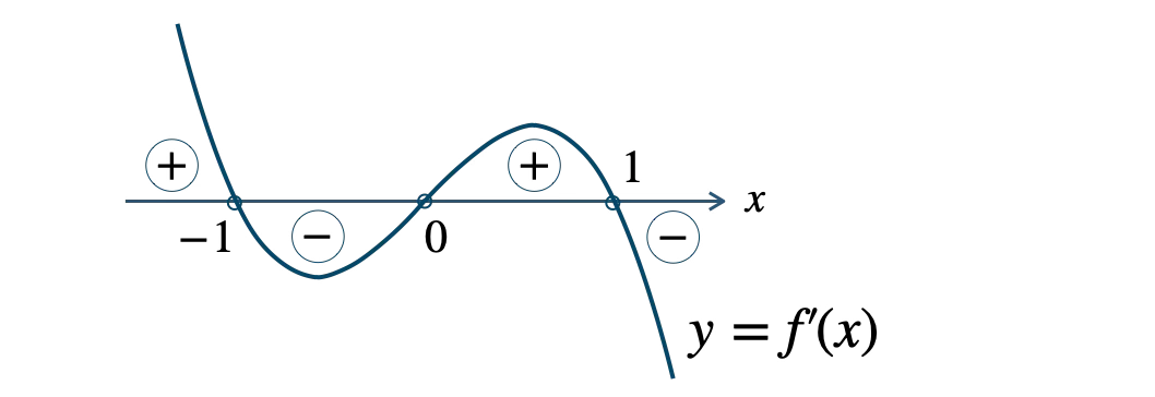 \(-1 \lt x \lt 1\) のとき、\(f^{\prime}(x) \lt 0\)