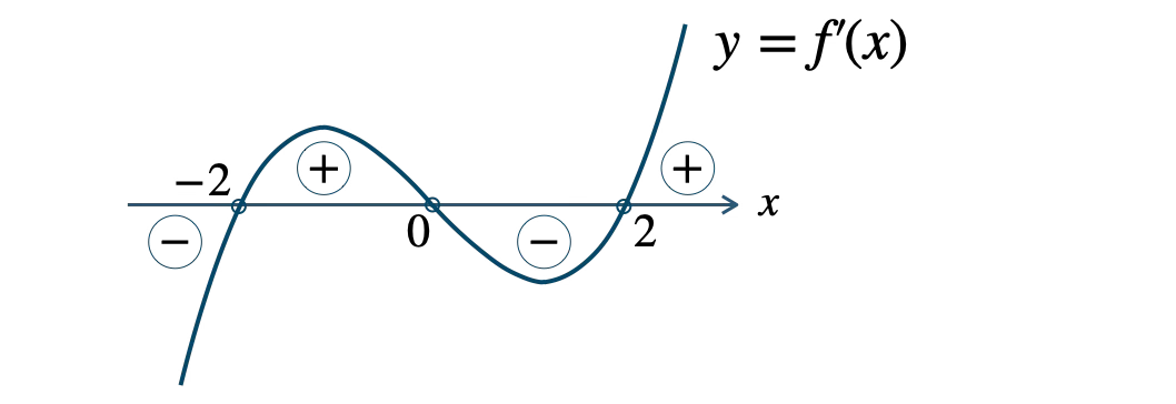 3次関数 \(y=f^{\prime}(x)\) のグラフより、
