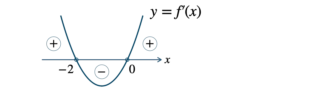 \(x \lt -2\) のとき、\(f^{\prime}(x) \gt 0\)