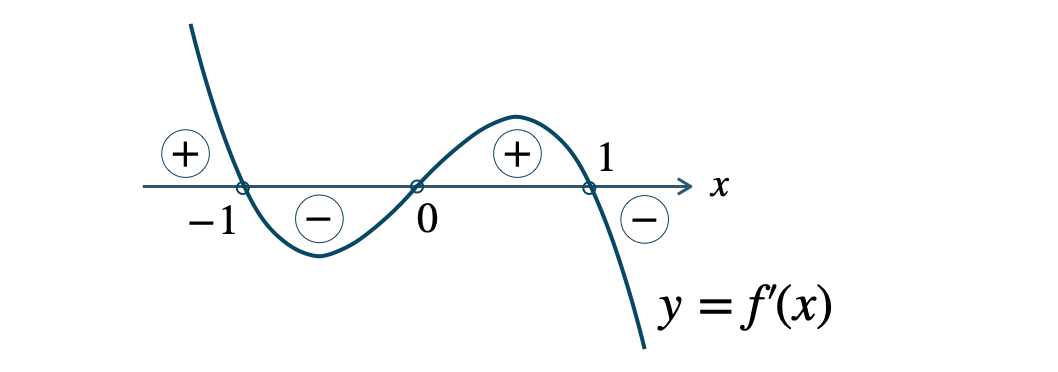 3次関数 \(y=f^{\prime}(x)\) のグラフより、