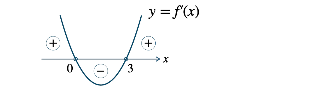 \(0 \lt x \lt 3\) のとき、\(f^{\prime}(x) \lt 0\)