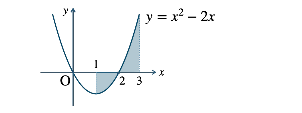 \(\begin{eqnarray}~~~&&-\displaystyle\int_1^2(x^2-2x)\,dx+\displaystyle\int_2^3(x^2-2x)\,dx\end{eqnarray}\)