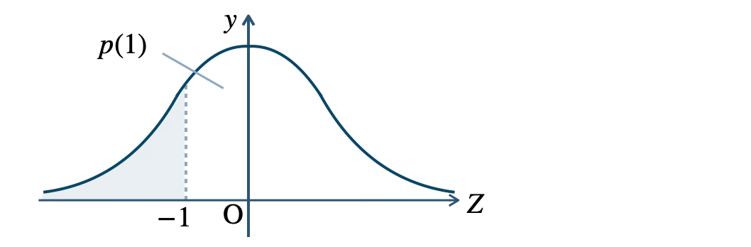 \(\begin{eqnarray}~~~P(X{\small ~≦~}110)&=&P(Z{\small ~≦~}-1)