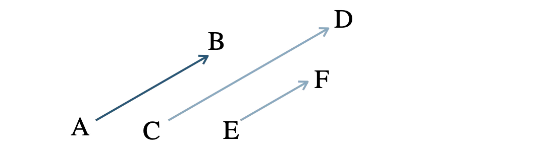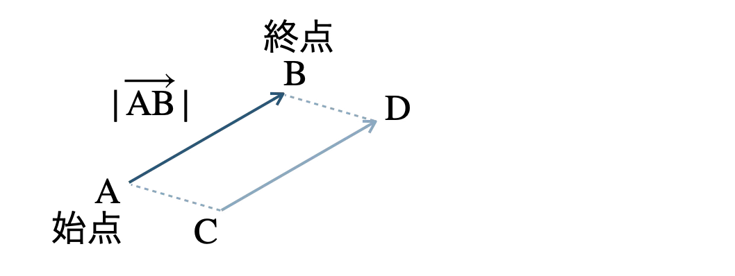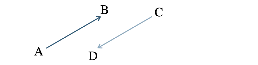 \(\overrightarrow{\rm AB}=\overrightarrow{\rm CD}\) や \(\overrightarrow{a}=\overrightarrow{b}\) と表す。