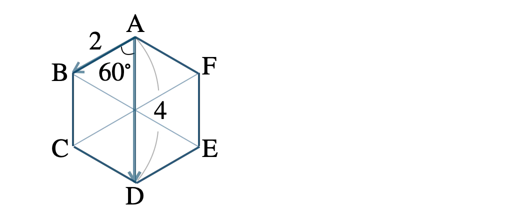 1辺の長さ \(2\) の正六角形の内積の求め方は、