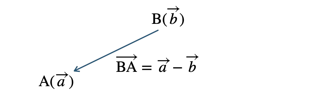 \(\begin{eqnarray}~~~\overrightarrow{\rm BA}&=&\overrightarrow{a}-\overrightarrow{b}\end{eqnarray}\)