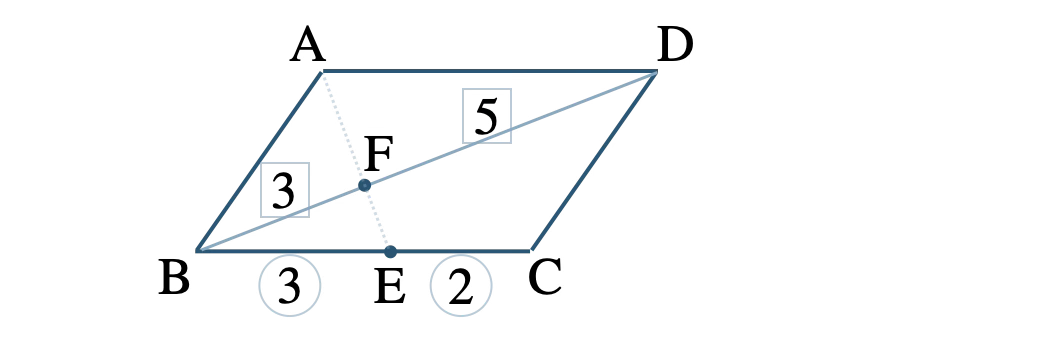 また、点 \( \rm F \) は対角線 \( \rm BD \) を \(3:5\) に内分するので、