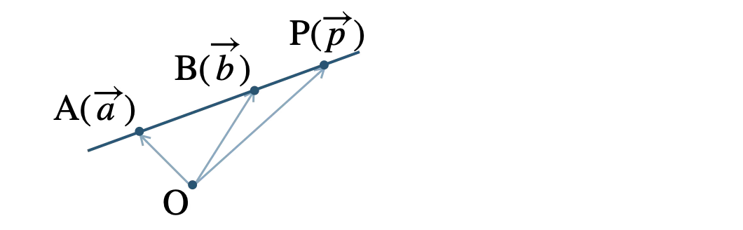直線上の任意の点を \({\rm P}(\overrightarrow{p})\) 、媒介変数を \(t\) として、