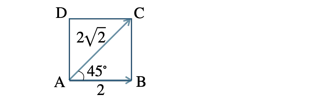 \(\begin{eqnarray}\overrightarrow{\rm AB} \cdot \overrightarrow{\rm AC}&=&|\,\overrightarrow{\rm AB}\,|\cdot |\,\overrightarrow{\rm AC}\,|\cdot \cos 45^{\circ}