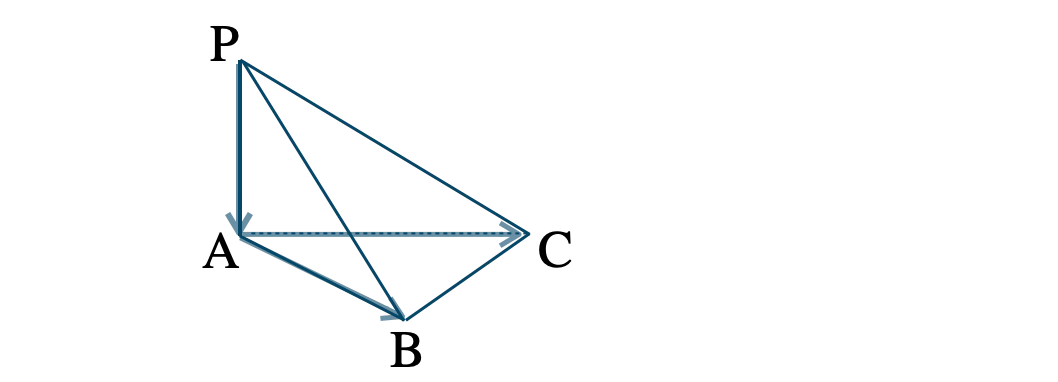 \(\overrightarrow{\rm PA}\neq\overrightarrow{0}~,~\overrightarrow{\rm AC}\neq\overrightarrow{0}\) より、\( {\rm PA}\perp{\rm AC} \)