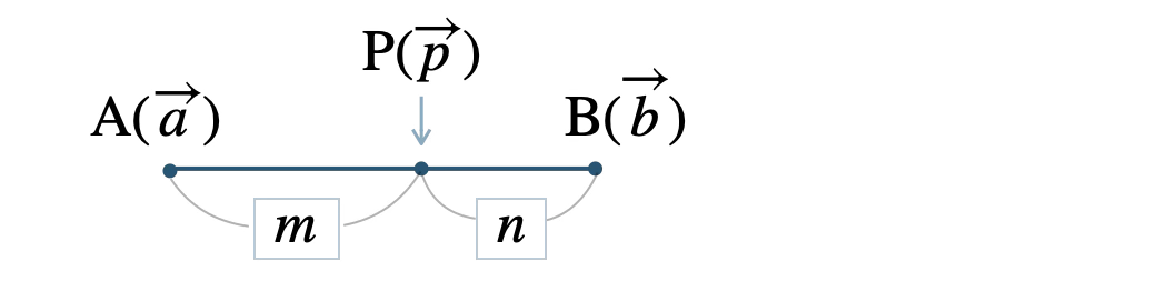 \(\begin{eqnarray}\overrightarrow{p}&=&\displaystyle \frac{\,n\overrightarrow{a}+m\overrightarrow{b}\,}{\,m+n\,}