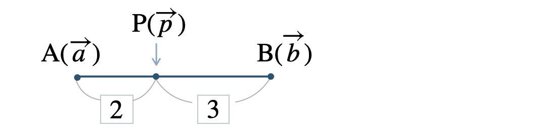 \(2:3\) に内分する点 \( {\rm P}(\overrightarrow{p}) \) は、