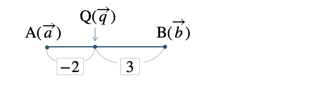 \(\begin{eqnarray}~~~\overrightarrow{q}&=&\frac{\,3\overrightarrow{a}+(-2)\cdot\overrightarrow{b}\,}{\,(-2)+3\,}